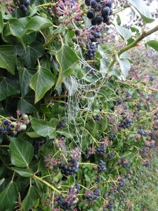 I say ‘provide’, as a parent would a child with its tea. I am not entirely anthropomorphising this plant. Each berry contains several seeds. Each creature that eats these berries absorbs the pith around the seeds, but the seeds travel straight through its digestive system and out the other end. By this time the chances are that the creature will have travelled at least a little distance from the parent plant. By making the berries stuffed with carbohydrate and so attractive to creatures to eat, each ivy plant is maximising the chance that its seed will be spread.